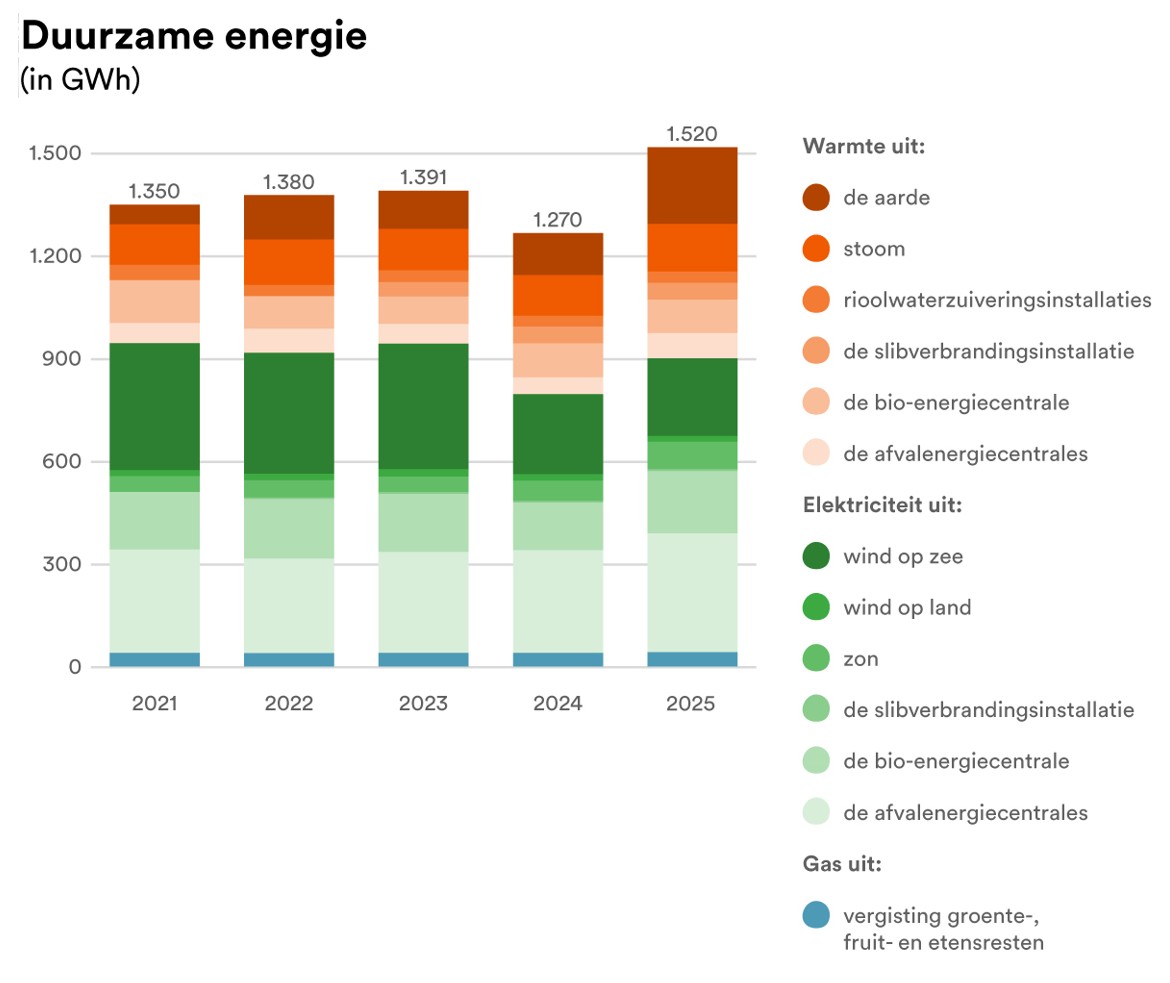 De totale hoeveelheid geleverde duurzame energie (warmte, elektriciteit en groen gas) is in 2025 toegenomen met ruim 19% ten opzichte van 2024. Dit komt met name door de start van de tweede aardwarmtebron in Maasdijk.